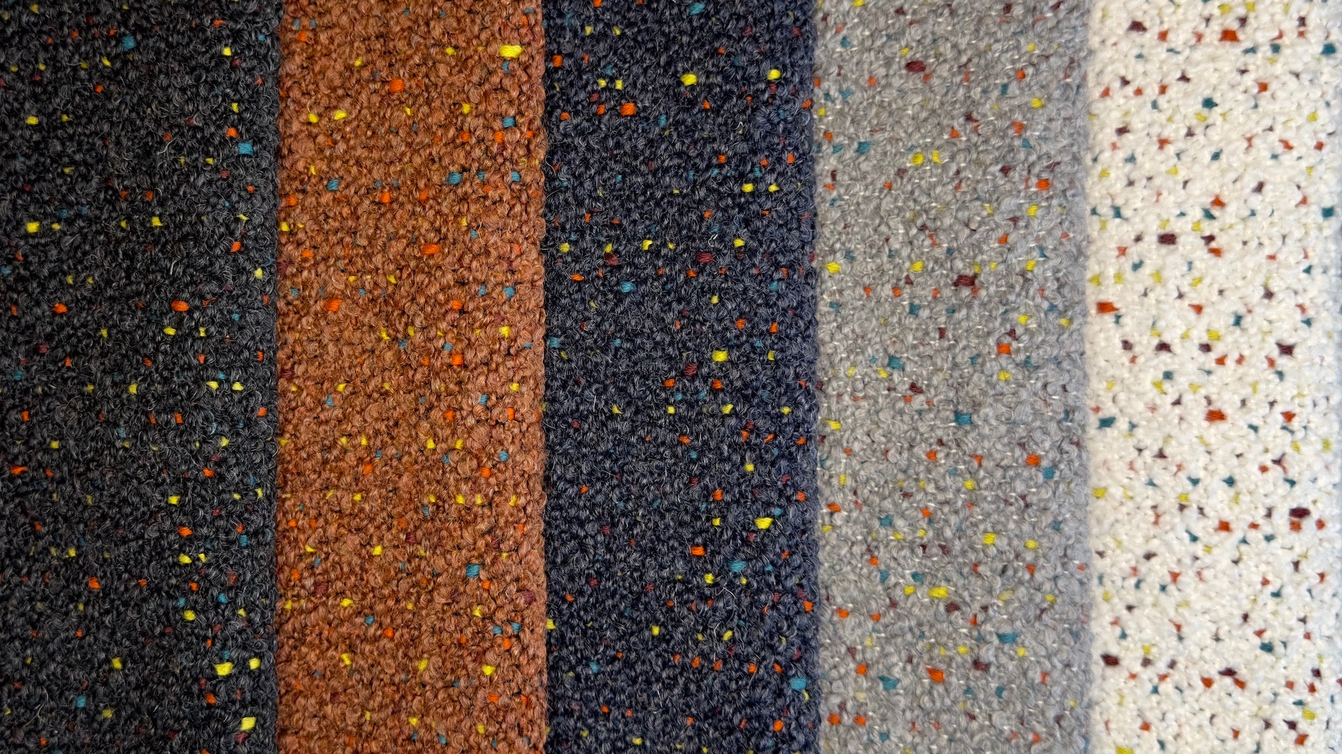 Add a little fun to your space with Spirit. This spirited (pun intended) fabric is woven with textural bouclé yarns, sprinkled with pops of color to add playful accents to your interiors.
